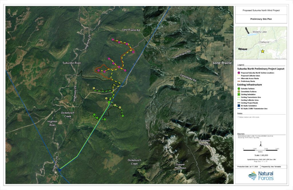 Saulteau First Nations and Natural Forces are proposing to develop the Sukunka North Wind Project (the Project), located south of Chetwynd. The Project will add new clean, renewable energy to the BC Hydro grid to help meet the growing energy demands in British Columbia.